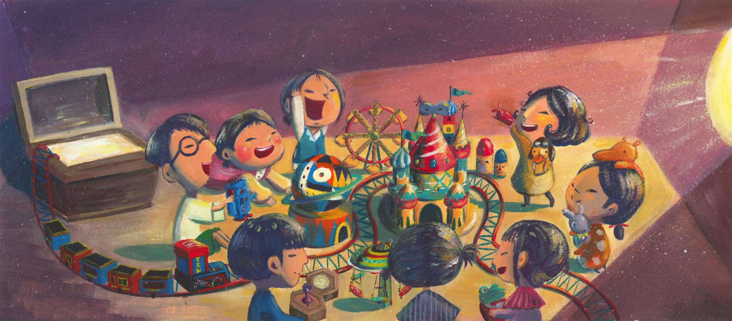 故事中,八個孩子戴著不同的面具,隱藏各自的缺陷。直至玩具夥伴給予孩子們關懷和愛,喚醒他們的童年,並終於成為了朋友。玩具讓彼此有共通語言,是溝通的橋梁。透過一起玩耍來打破隔閡,維繫珍貴的友誼。這就是生活中的幸福。