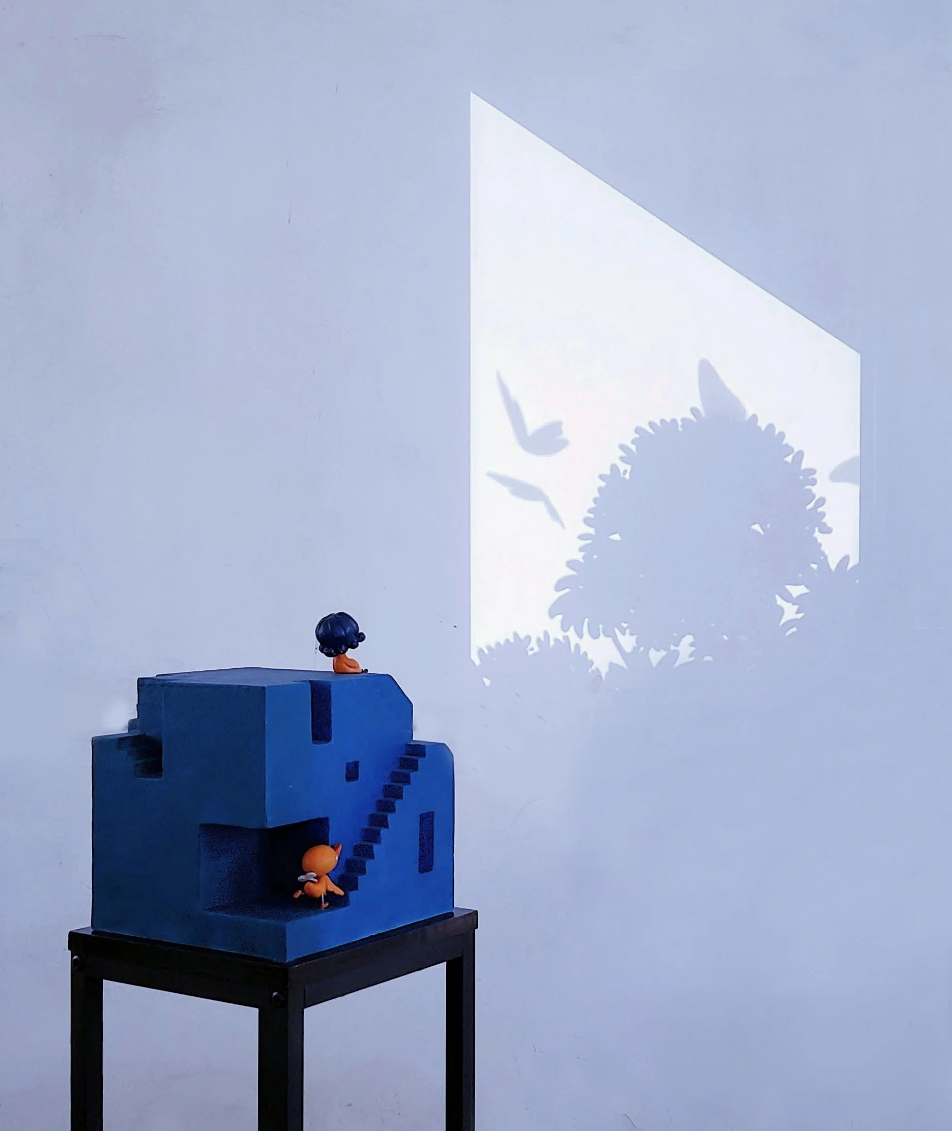 電繪《清晨的壁畫》被轉化為裝置藝術。呈現出黎明時分的景象,影片中,牆上絕美的剪影一瞬即逝。世上美好的事物都是曇花一現,令人惋惜,卻顯得彌足珍貴,畢竟世上沒有什麼是完美的。萬物即使有瑕疵,都是獨一無二的,就像我們每